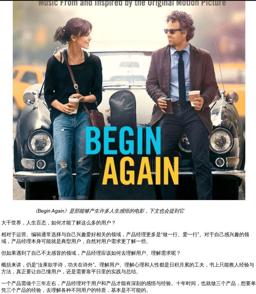 - 用户和产品分析:了解用户 -> 形成需求 ->设计产品
