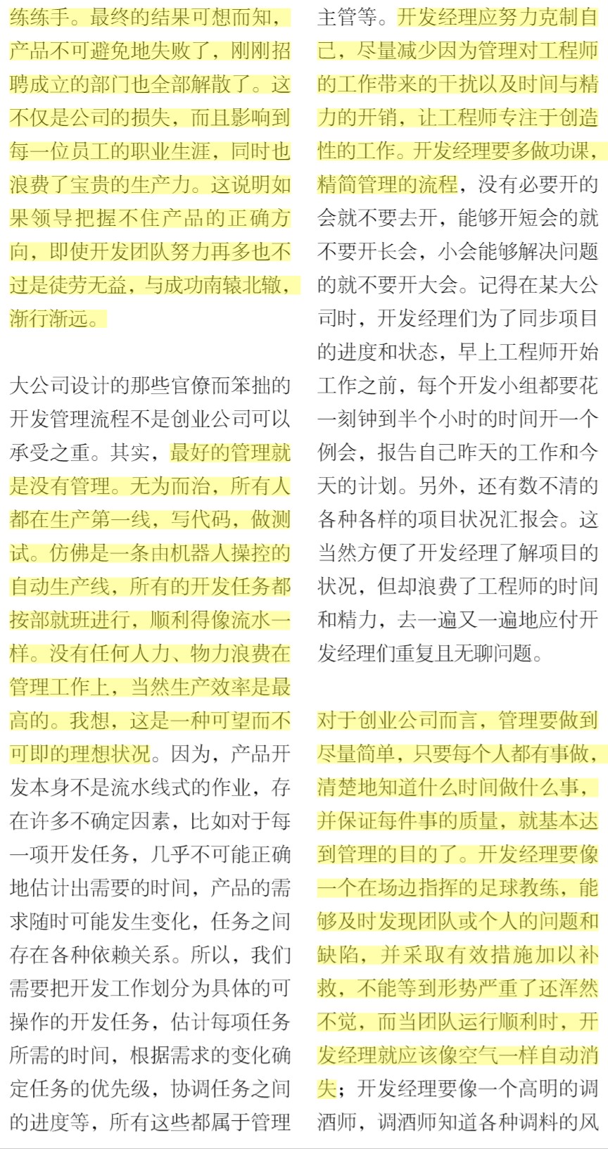 如果是小公司,管理(包括项目管理)要从简,不要小会天天开,大会隔天开,超长会议每周开。