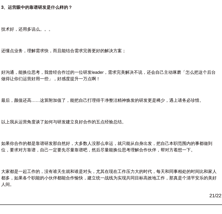 运营眼中好靠谱的研发: